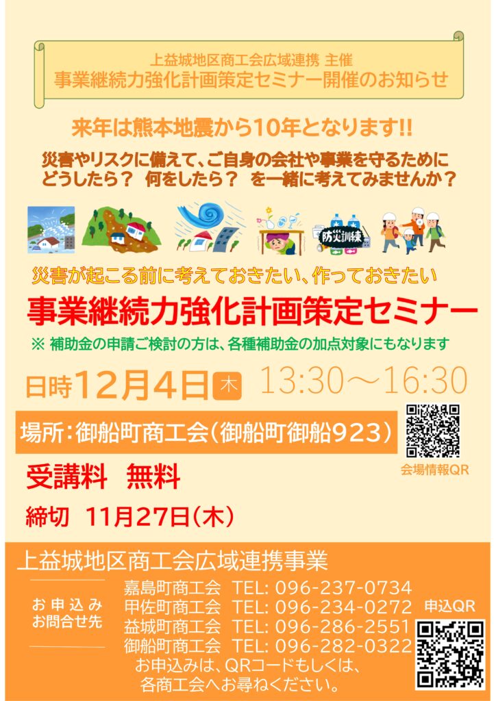 事業継続力強化計画セミナー(12/4)のお知らせ