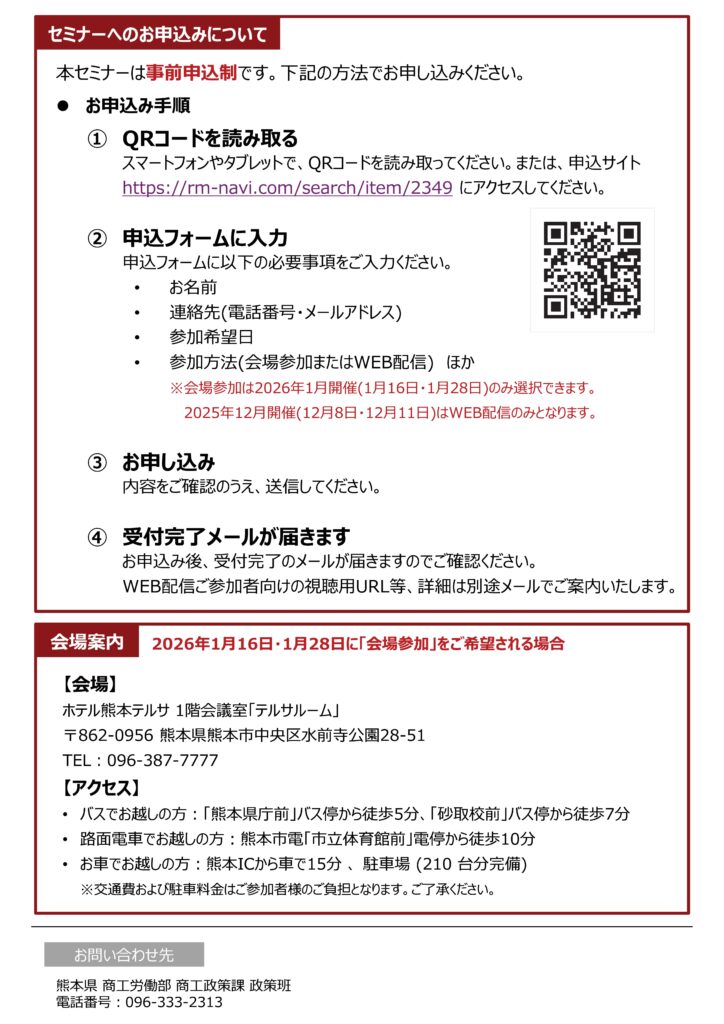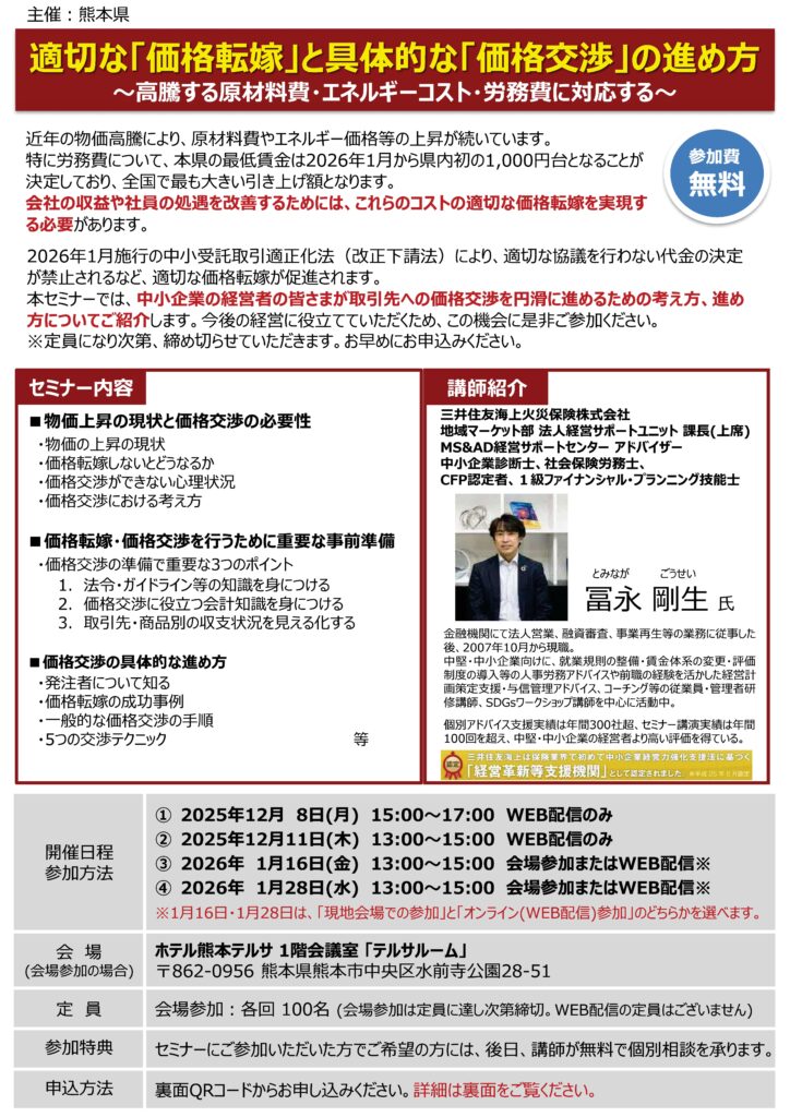 「価格転嫁」と「価格交渉」の進め方セミナー(無料)のお知らせ(熊本県主催)